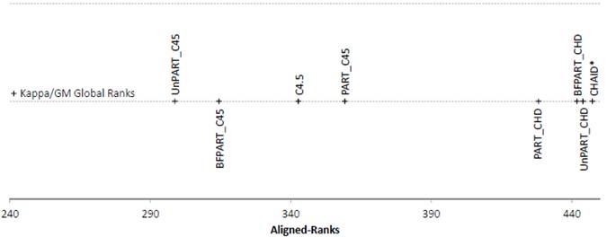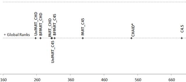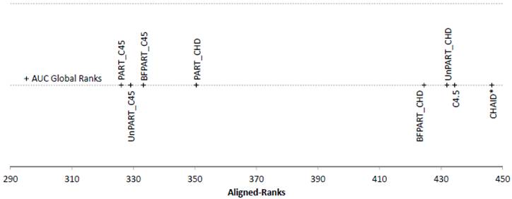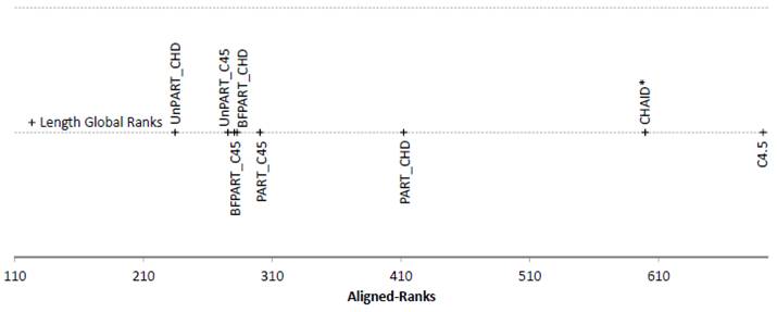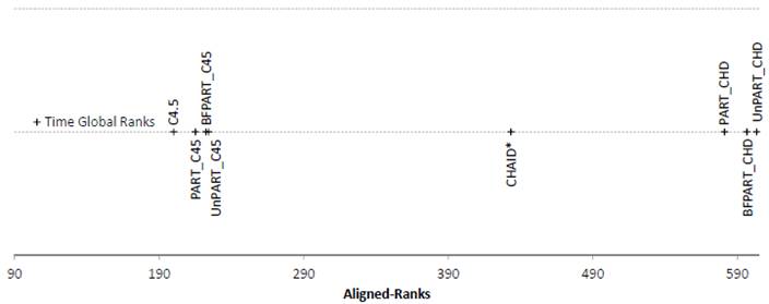 Figure 5. Friedman Aligned Ranks for the C4.5-based and CHAID*-based algorithms for the Time measure